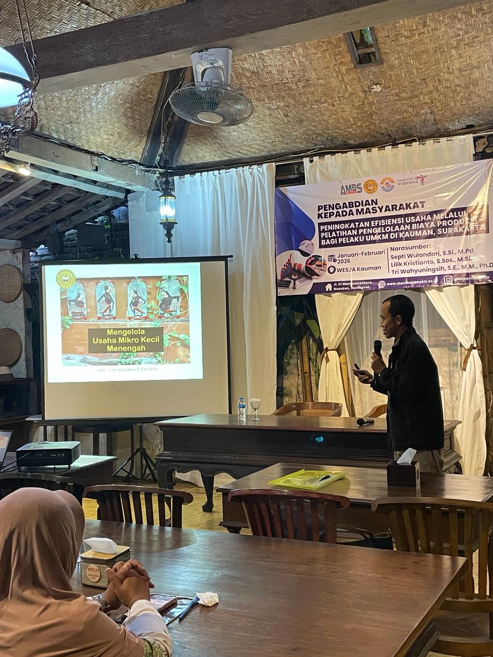 Surakarta, Februari 2026 —Telah diselenggarakan kegiatan pengabdian kepada masyarakat bertema “Peningkatan Efisiensi Usaha Melalui Pelatihan Pengelolaan Biaya Produksi Bagi Pelaku UMKM di Kauman, Surakarta” pada periode Oktober 2025 hingga Februari 2026. Kegiatan ini merupakan bentuk kontribusi nyata dalam mendukung pengembangan dan pemberdayaan pelaku UMKM di wilayah Kauman, Surakarta.