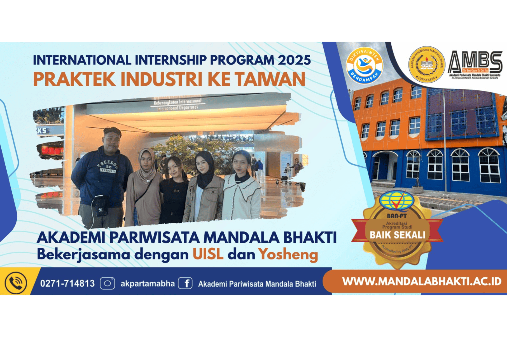Akademi Pariwisata Mandala Bhakti adalah perguruan tinggi yang terletak di kota Surakarta, berfokus pada pendidikan dan pengembangan sumber daya manusia di bidang pariwisata, khususnya perhotelan dan manajemen pariwisata. Akademi Pariwisata Mandala Bhakti berkomitmen untuk menghasilkan lulusan yang kompeten dan siap bersaing di industri pariwisata global. Dikenal dengan kurikulum yang terintegrasi antara teori dan praktik,Akademi Pariwisata Mandala Bhakti memberikan pengalaman langsung kepada mahasiswa melalui kerja praktek di berbagai hotel, restoran, dan destinasi wisata. Dengan fasilitas modern, dosen berpengalaman, dan jaringan industri yang luas, serta mempersiapkan mahasiswa untuk menghadapi tantangan dan meraih kesuksesan dalam industri pariwisata yang terus berkembang. Akademi Pariwisata Mandala Bhakti juga menawarkan program studi yang relevan dan sesuai dengan kebutuhan pasar, memastikan lulusannya tidak hanya menguasai pengetahuan teknis, tetapi juga keterampilan interpersonal dan manajerial yang dibutuhkan dalam dunia perhotelan dan pariwisata.
